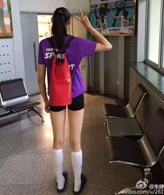 这腿,大写的羡慕!!!据说惠若琪亲测朱婷腿长为120公分,kao!已经到小编胸部了!!!
