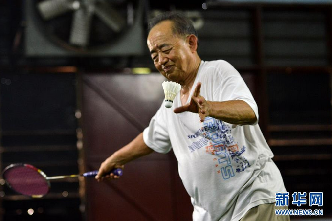 在马来西亚槟榔屿州大山脚,80岁的郑炳发在接受采访时展示李宗伟当年模样(8月11日摄)。 郑炳发直言,自己刚开始也没觉得能带出一个世界冠军,但是慢慢发现,李宗伟的吸收能力特别强,“当天教的东西,第二天就能用上,甚至不到半年,他练的东西已经超越我的范围了。”惊喜过望的郑炳发大胆跟李宗伟父亲打赌,“你的孩子将来打世界”。