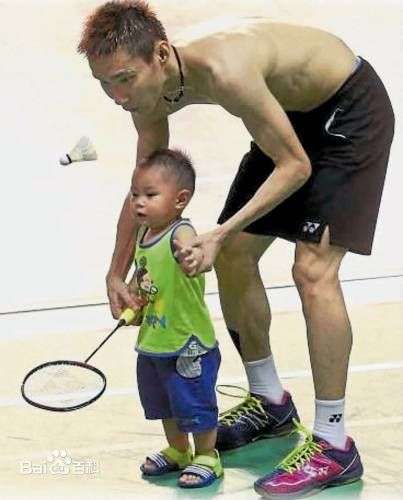 2013年4月12日,李宗伟的妻子黄妙珠产下一子,起名李嘉谦。2015年7月9日,李宗伟的第二个孩子出生,取名Terrance。图为李宗伟教小儿子打球。
