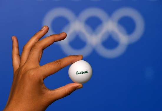 图为里约奥运会乒乓球比赛用球(8月16日摄)。本届奥运会乒乓球比赛指定用球由中国红双喜公司提供。作为代表中国运动器材的品牌,红双喜五次被奥运会接纳为赛场器材。新华社记者 殷博古 摄