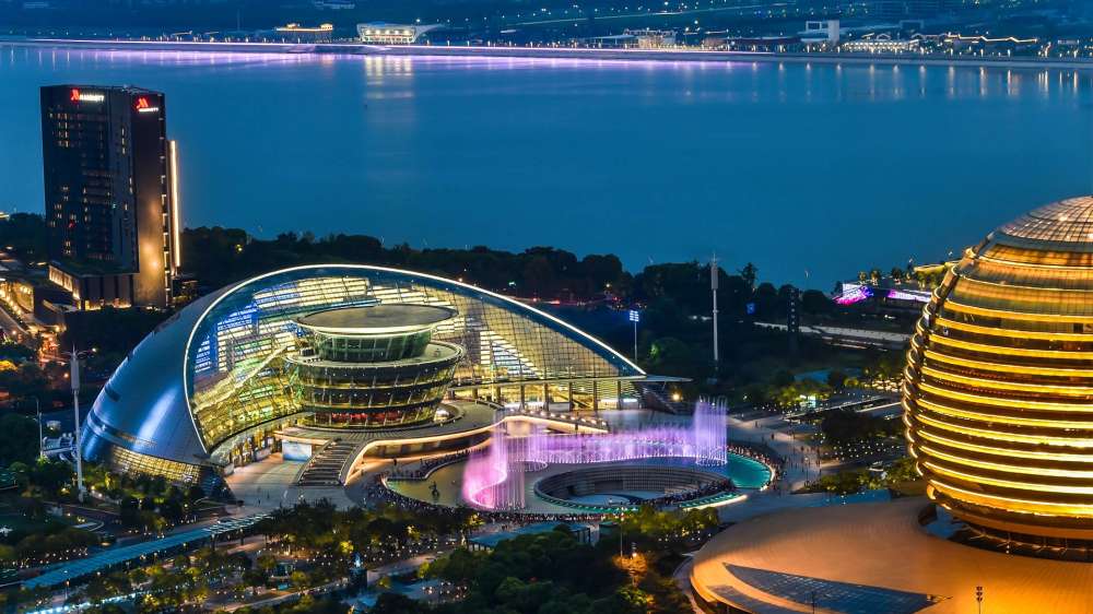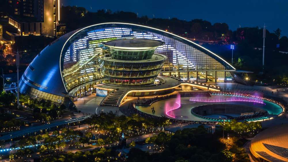 杭州大剧院灯光璀璨(8月31日摄)。 新华社记者 徐昱 摄