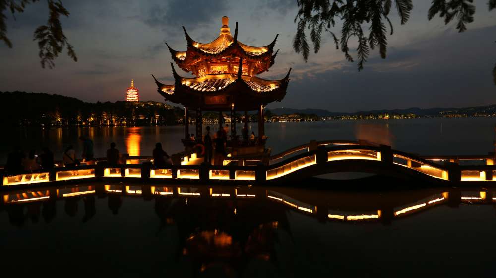 杭州西湖夜景(8月31日摄)。临近G20杭州峰会,杭州夜色柔美,灯光璀璨。9月4日至5日,二十国集团(G20)领导人第十一次峰会将在浙江杭州举行。 新华社记者殷刚摄