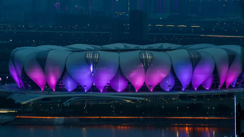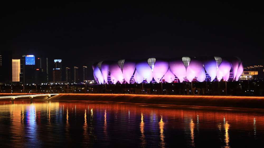 杭州奥体中心主体育场被彩灯点亮(8月31日摄)。新华社记者 徐昱 摄