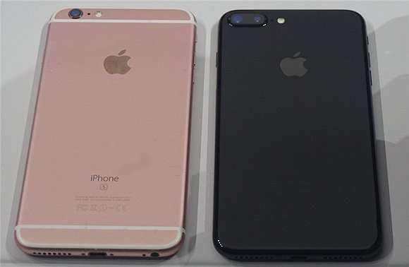 左为上一代产品iPhone 6s plus,右为新产品iPhone 7 plus。