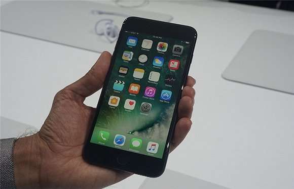 这次iPhone 7就新推出了两款全新的配色,一个普通黑,以及带镜面效果的亮黑色。图为亮黑色iPhone 7 plus背面。