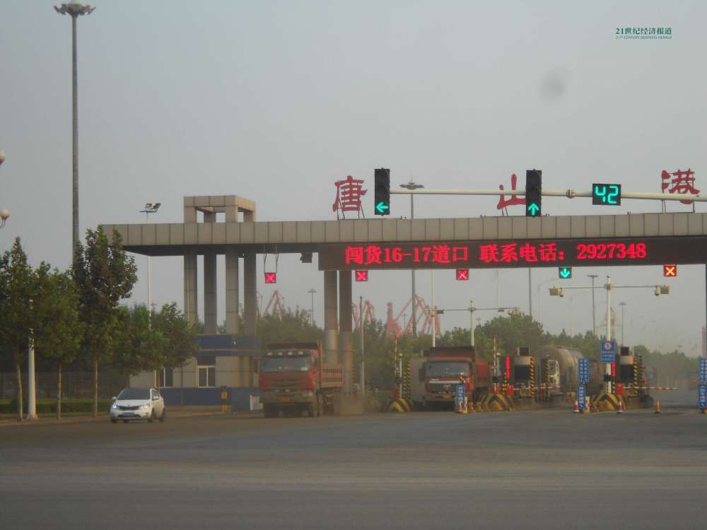 9月3日京唐港出来运输铁矿石的重卡一个接一个。(摄影/21世纪经济报道)