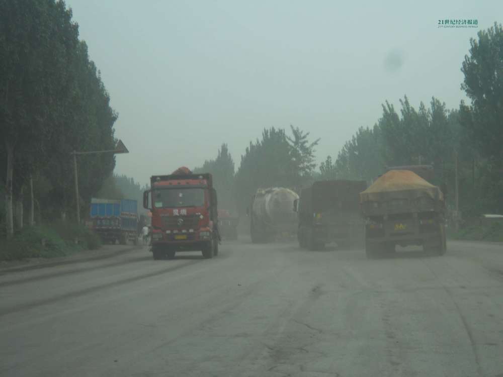 9月4日,滦县县城很多路,因为拉铁矿石的成群结队,都把路面严重破坏。(摄影/21世纪经济报道)