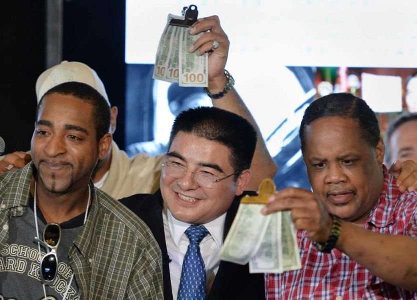 当地时间2014年6月25日,中国富豪陈光标在美国纽约市中央公园的船屋餐厅举行慈善活动,宴请千名无家可归的穷人,并承诺发放现金300美元。这次活动与美国纽约“救援使命”慈善组织合办。