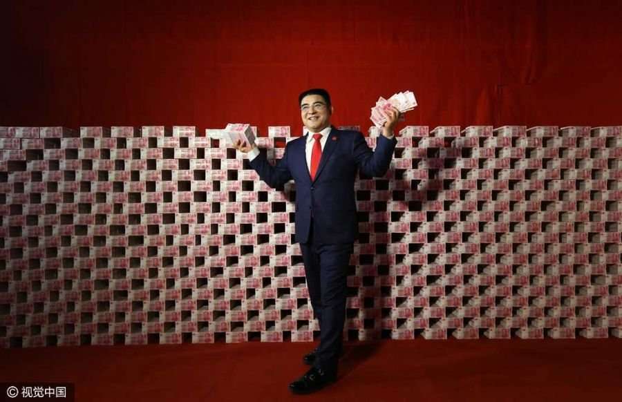 2013年12月24日,南京,在临时搭建的数米高的露天红帐内,陈光标站在一沓沓百元人民币堆出的“钱桌”旁,指着身后、左、右的三面“钱墙”说:“我就是要用这种夸张方式,让更多人关注、并积极参与第三次全国经济普查。”陈光标在“钱墙”前踱步说:“欢迎大家来查我。”