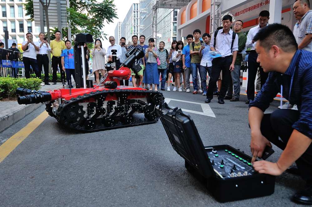 中信重工机械股份有限公司研制的防爆消防灭火侦察机器人。具有高清无线传图、远程实时视频监控和根据环境自动升降高度功能,可大角度爬坡越障,并拖动两条60米充满水的80水带高速行走。