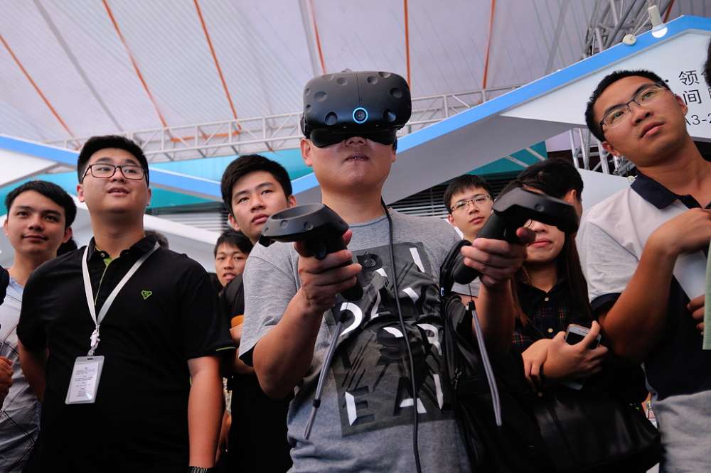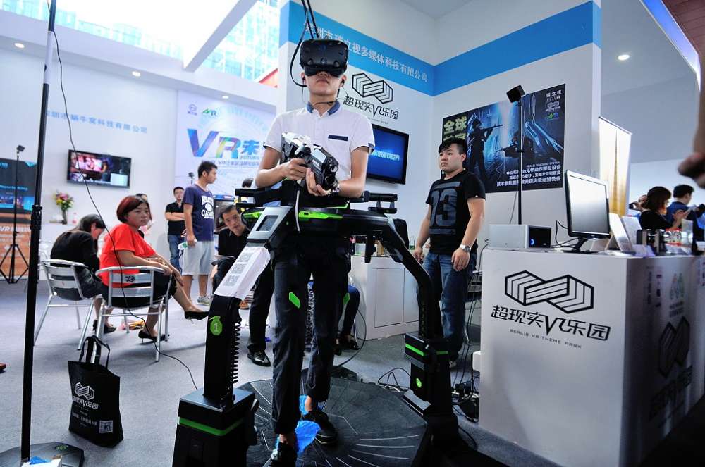 深圳银路科技有限公司展位上,参观者正在体验的一款VSTAR VR游戏机。