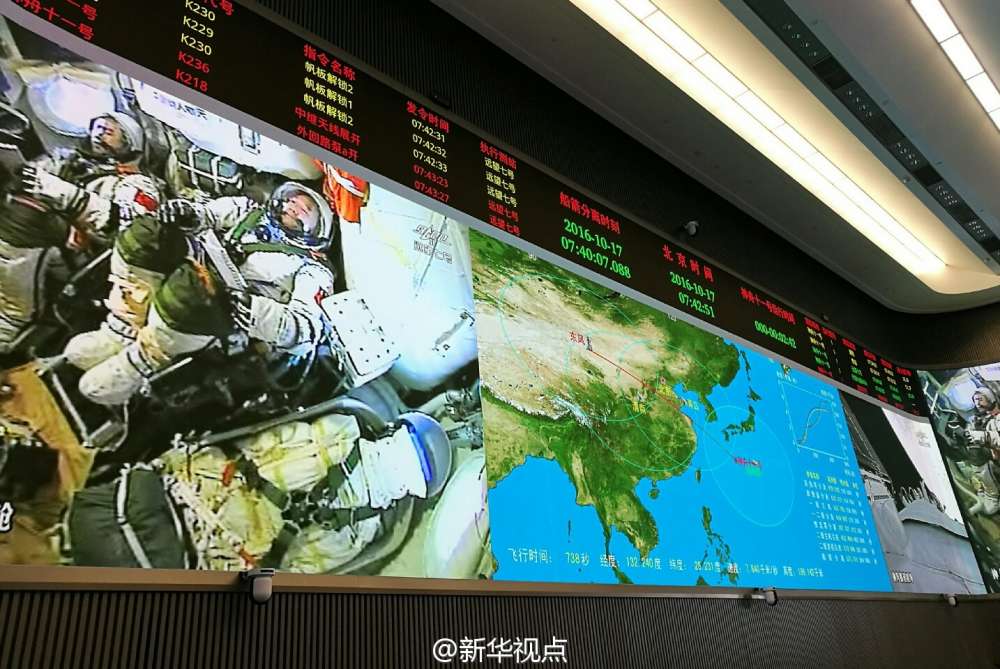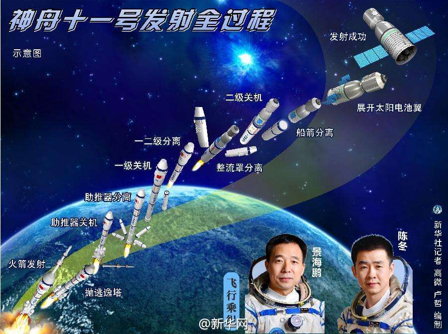 10月17日7时30分,搭载着神舟十一号载人飞船的长征二号F遥十一运载火箭在酒泉卫星发射中心点火升空。