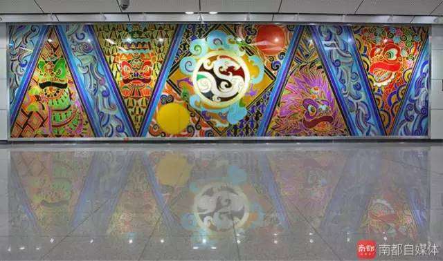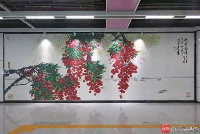 人民南站艺术墙。来源于袁机美术馆国画大师袁机的作品《南国风情》。以此向深圳的绘画大师致敬!