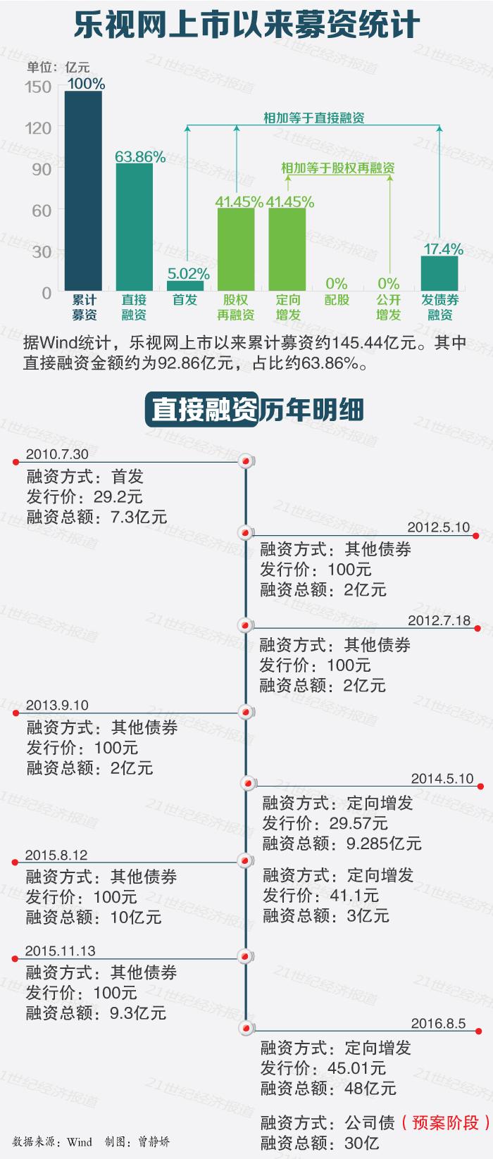 上市后,乐视除了疯狂烧钱扩张,还在疯狂融资。据统计,乐视网六年间完成首发、定增、发债共9次,合计融资金额92.86亿元,还有30亿公司债券正在进行中。