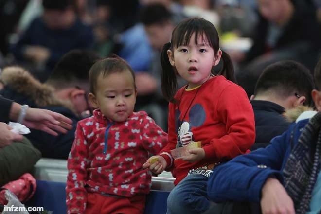 2016年1月13日,坐在广州站发往宜昌东列车上的两名儿童。(南方周末记者 张涛、翁洹/图)