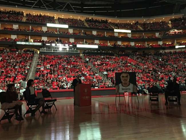 火箭主场为每一个座位铺上姚明退役纪念版T恤。各种关于姚明的元素,使得丰田中心变成红色的海洋,而火箭的11号球衣也会升至球馆上方。