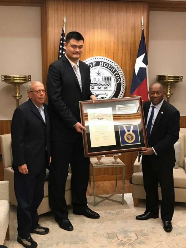 球衣退役仪式之前,休斯敦市长就接见了姚明,并给了中国巨人一个“礼物”——他宣布将2月2日定为“姚明日”,同时任命姚明为休斯顿的亲善大使。