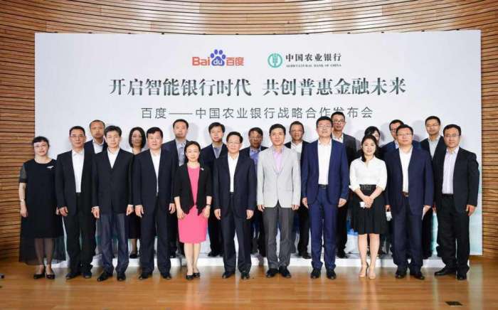 百度董事长李彦宏在现场表示,“中国农业银行是中国规模最大、布局最完善的金融企业之一,也是普惠金融最坚定的践行者。百度则拥有全球最领先的人工智能技术。金融作为人工智能最重要的应用领域,双方通过AI+Fintech的联合创新,将推动银行业进入智能金融时代。”