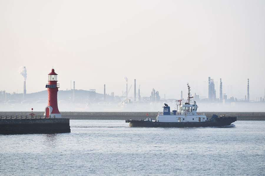 傍晚,大连国际会议中心临近的海面(黄海)。