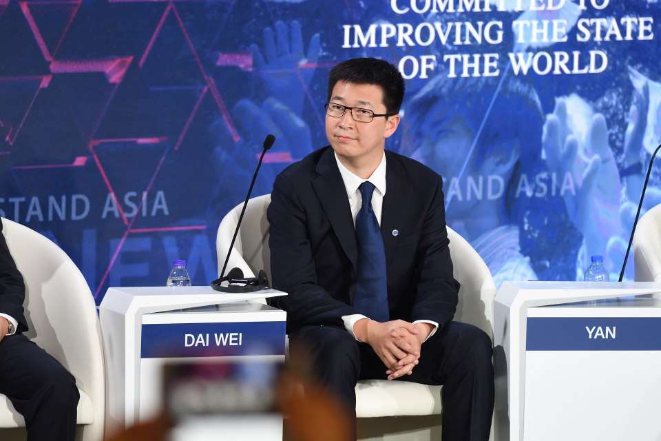 OfO创始人兼CEO戴威在“中国消费阶层的全球影响”论坛上。1991年出生的他是最年轻的与会者。