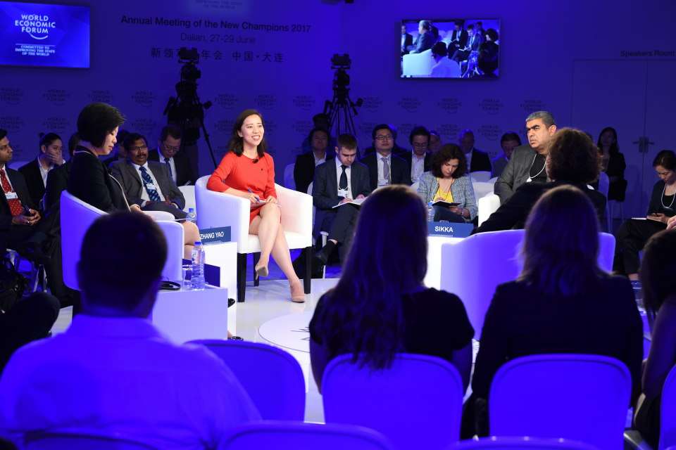 “战略动态:数字经济”论坛。从增强现实到机器学习,全球数字经济格局正在改变。政策和离业领袖如何跟上技术、政治与经济的发展步伐? 讨论内容:设计人机界面;多方台作,解决通用数字身份问题;塑造物联网生态系统。(21世纪经济报道摄影记者 陈逸航大连报道)