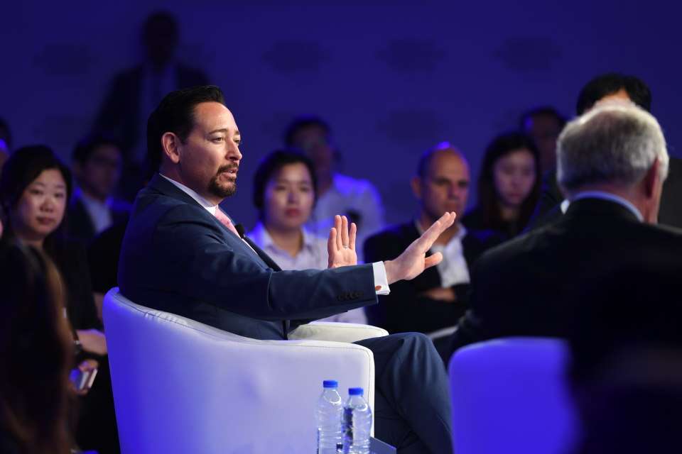 美国江森自控董事长首席执行官Alex Molinaroli在“智慧革命城市”论坛上。