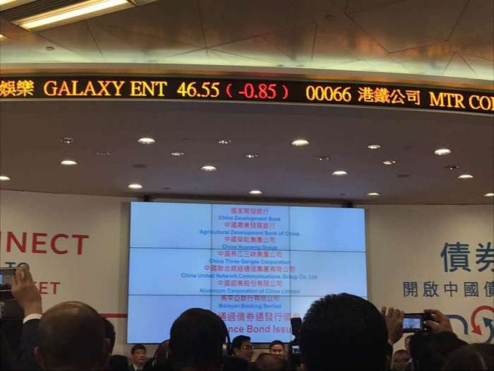 债券通开通首日,共有七家机构进行了一级债券发行,包括国家开发银行、农业发展银行、中国铝业公司、长江三峡集团、华能集团、联合网络通信集团、马来亚银行。