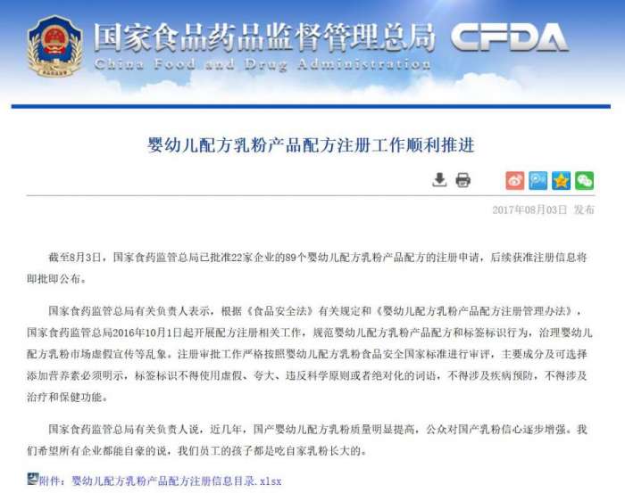 8月3日深夜,国家食药监总局公布首批获通过婴幼儿配方奶粉注册制名单,22家企业共89个配方产品申请获批,这也意味着婴幼儿奶粉配方注册制新政终于落地。