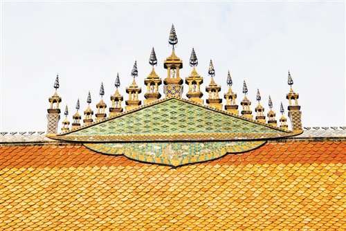 千年佛都琅勃拉邦如今保存下来的寺庙共有30多座。我在清晨的静谧中走入了最著名的香通寺。同中国寺庙建筑的敦厚大方、讲究布局比起来,老挝的寺庙更加小巧灵动,寺院布局也十分随意。细而夸张的飞檐甩着优美的曲线指向天空、屋顶上细而长的佛堂造型如天线林立。其建筑本身极尽修饰装潢之能事,寺庙周身的每一寸表面无不精雕细刻、贴金描银。仅仅看一扇窗板,各种浮雕繁复的佛像与花纹全部漆上金色,金银饰品与象牙无度镶嵌,在朝阳的光线映射下,让人眼花缭乱,几乎生出佛国天堂的幻象。