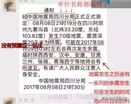 一、造谣【四川地震局发布余震预警】西安警方已将此条谣言始作俑者抓获!