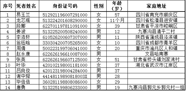 九寨沟县委宣传部消息,截至8月10日18时,“8.8”九寨沟地震遇难20人,其中14名遇难者已确认身份,6名正在核实身份。