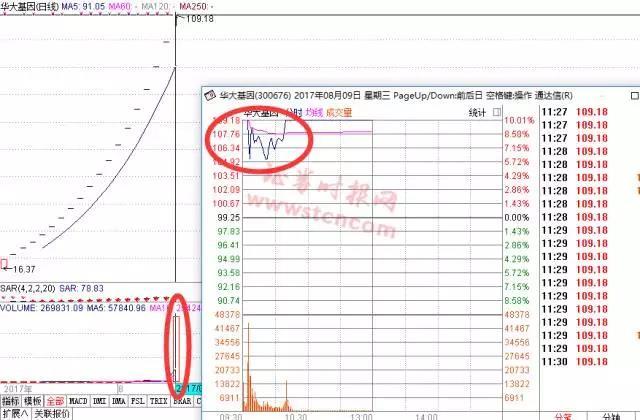 该股今日仍以涨停价开盘,但很快大量抛单涌现,进入集合竞价时段几分钟后打开涨停,同时伴随巨量成交,截至今日早市收盘,华大基因再度封上涨停,换手率已高达67.29%,成交29.1亿元,为A股早市成交金额第二高的股票。