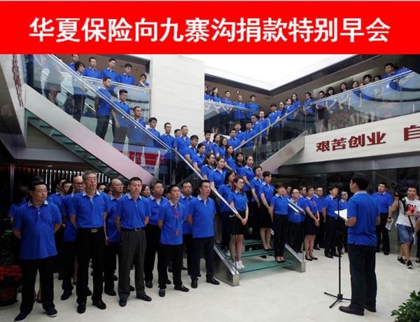 “8•8”九寨沟地震发生后,华夏保险公司党委第一时间决定,向灾区捐款1000万元,用于支援灾区抗震救灾,重建家园。同时,华夏保险员工自发捐款达到100余万元。