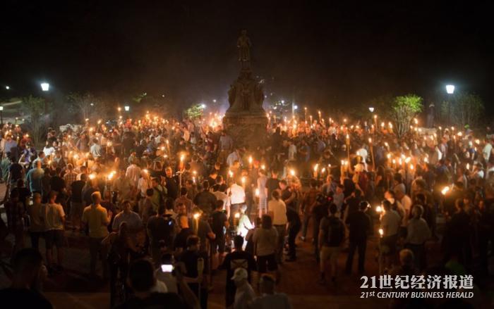 当地时间8月12日,美国极右派运动在弗吉尼亚州夏洛兹维尔市与反对者爆发强烈冲突。当晚,弗吉尼亚州长宣布,已有1名平民和2位警察死亡,受伤人数数十人。州长在12日白天宣布进入紧急状态。特朗普总统和第一夫人梅兰妮亚,以及两党国会议员均发表声明谴责这起暴力事件。