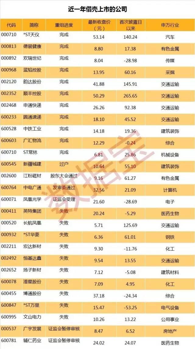 数据宝统计了近一年来借壳上市案,33家公司中,13已完成,还有7家正在进行。