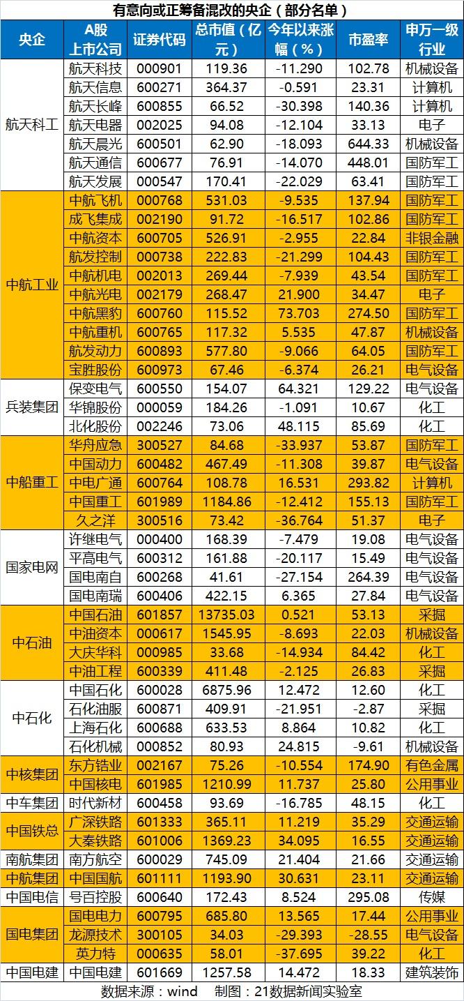 混改试点主要围绕着电力、石油、天然气、铁路、民航、电信、军工等7大领域进行,究竟还有哪些企业会参与其中?下面列出了有意向参与混改的央企名单,拿走不谢!