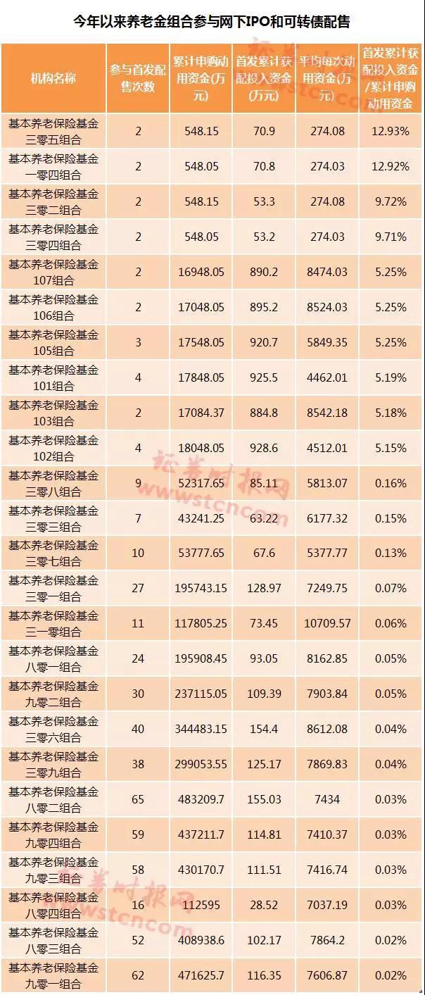 除了“八零二组合”,养老金主战场是打新,获配比例最高超10%