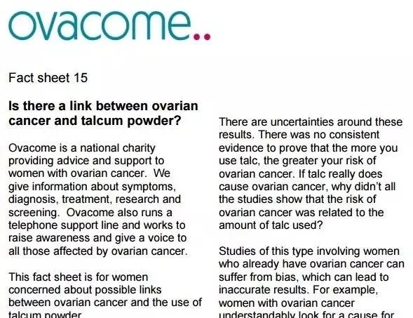 即使有研究表明,使用滑石粉会稍微增加患癌几率,那因为使用滑石粉而额外患上卵巢癌的女性数量也是微不足道的。”