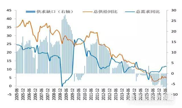 我们甚至看到了这几年少有的供求缺口,因为每年需求有10%左右的增长,但是供给在不断下滑。今年上半年,房地产投资8.5%,出口增长8.5%以上,消费增长10.4%以上,基建投资增长17.5%,但是产能投资只增长5.5%,所以供求缺口所带来的压力一定是价格的上涨,企业盈利改善以及资产负债表的修复。我怀疑到2019年前后,如果我们政策不调整,我认为我们2019年前后大家将会看到部分原材料短缺,2004年我们出现过电荒,也是跟当时背景相关的。