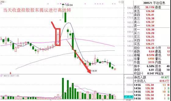 7月6日晚间,平治信息控股股东、实际控制人郭庆向董事会提交的《关于 2017 年中期高比例送转方案的提议及承诺》,提议以公司现有总股本4000万股为基数进行资本公积金转增股本,向全体股东每10股转增10股。受此消息影响,平治信息7月7日强势涨停,但好景不长,在7月10日再度冲高后便放出巨量,此后一段时间陷入连续下跌,股价一度较提议送转前下跌近3成!截至今日收盘,最新股价仍较提议送转前下跌近两成。