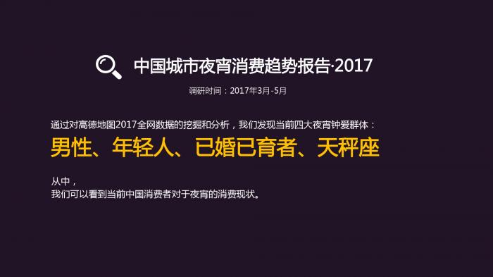 吉利联合高德地图发布了《2017中国城市夜宵消费趋势大数据报告》,以“谁在深夜寻找幸福的味道?”为主题,从夜宵消费群体的性别、年龄、星座、出行范围、喜好品类等维度,为我们呈现了中国城市夜宵消费趋势。
