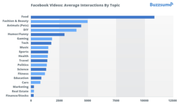 举个例子,社交分析公司BuzzSumo发布了一份新报告,对1亿个Facebook视频进行分析,寻找表现最好的视频,结果不出所料。主要发现之一:Facebook用户喜欢观看的内容倾向于可消费类型:美食视频无疑是互动最多的视频。紧随其后的是“时尚&美容”和“动物(萌宠)”。