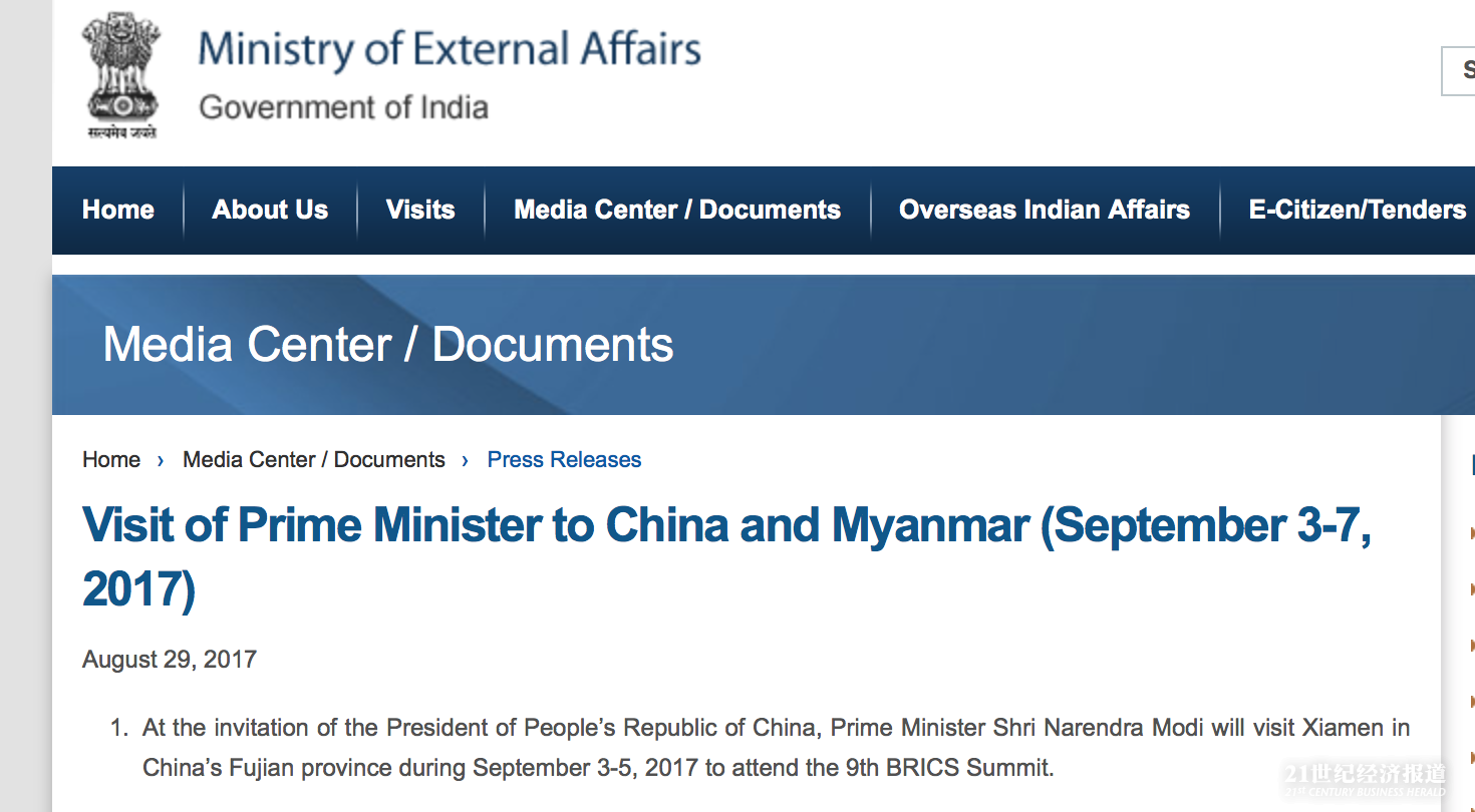 据印度外交部8月29日官网消息,印度总理莫迪将于9月3日至5日前往厦门出席金砖国家峰会。