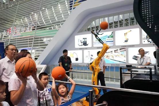 (图/格力投篮机器人与小朋友现场比赛,百发百中)