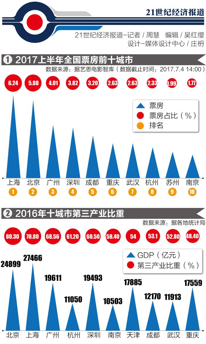 21世纪经济研究院认为,上海电影票房2017全年可能会超过北京,硬件设施的增加带来的市场红利仍会继续爆发。