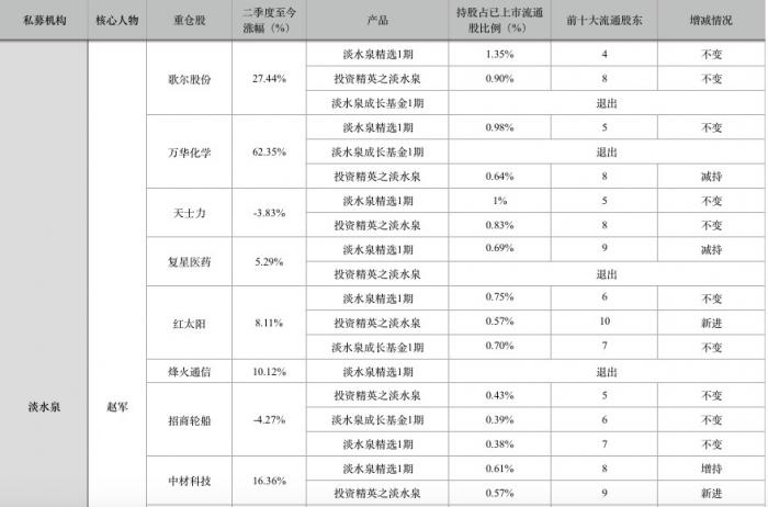 另一家处在排行榜前列的机构,赵军掌舵的淡水泉投资也有不少新重仓股浮出水面。实际上据记者观察,淡水泉今年二季度的换股动作可谓不小,新进个股家数远超其他报告期。