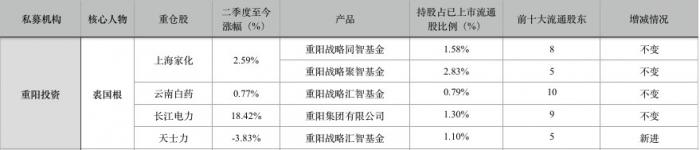 除此之外,重阳投资二季度继续坚守上海家化、云南白药和长江电力。而实际上,重阳投资在这三只股票上的投资时间平均已超过3年。