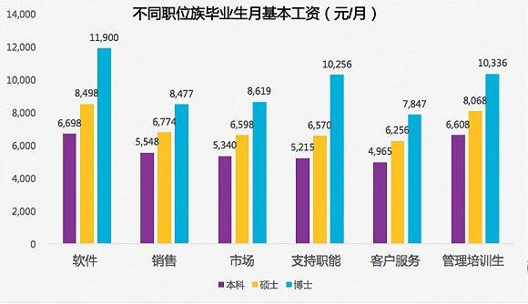 应届生起薪:软件开发最赚钱,客户服务起薪低