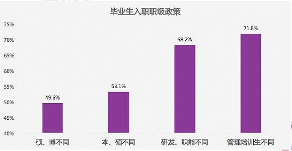 但学历高在确定职级上的优势并不明显。关于是否为不同学历毕业生定不同职级,各家公司并未形成主流实践,两种做法的公司几乎各占50%。