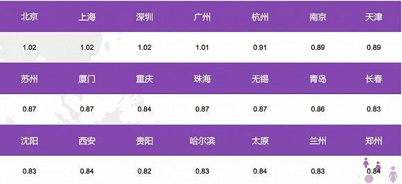 决定薪酬的另一个因素就是毕业生就业所在的城市。毕业生城市薪酬差异系数在一定程度上反映了不同城市间毕业生起薪的差异。调研数据显示,杭州等二线城市毕业生起薪约为一线城市的0.9倍,而兰州等三线城市应届生起薪约为一线城市的0.8倍,而北京、上海则达到1.02倍。